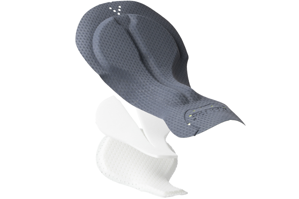 La combinación de densidades en estructura piramidal por capas, con transiciones suaves y una base anatómica ancha diferencian esta línea de badanas.